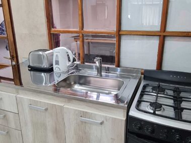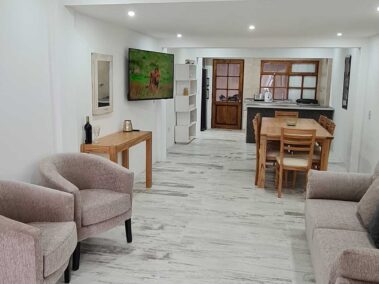 Un salón de 12 metros por 4mts. Donde se ubica la cocina, comedor y un estar.